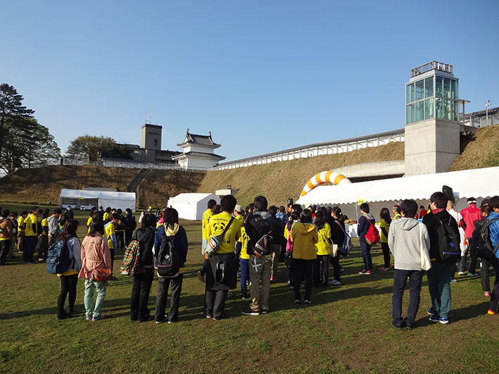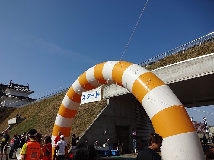 前日の雨が嘘のような晴天になり、城址公園の綺麗に咲いた桜がランナーを迎えてくれました。