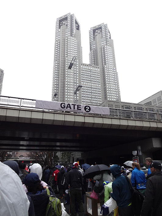 7時前に会場入りし、スタートゲート2から手荷物検査を受けてランナーエリアに入りました。