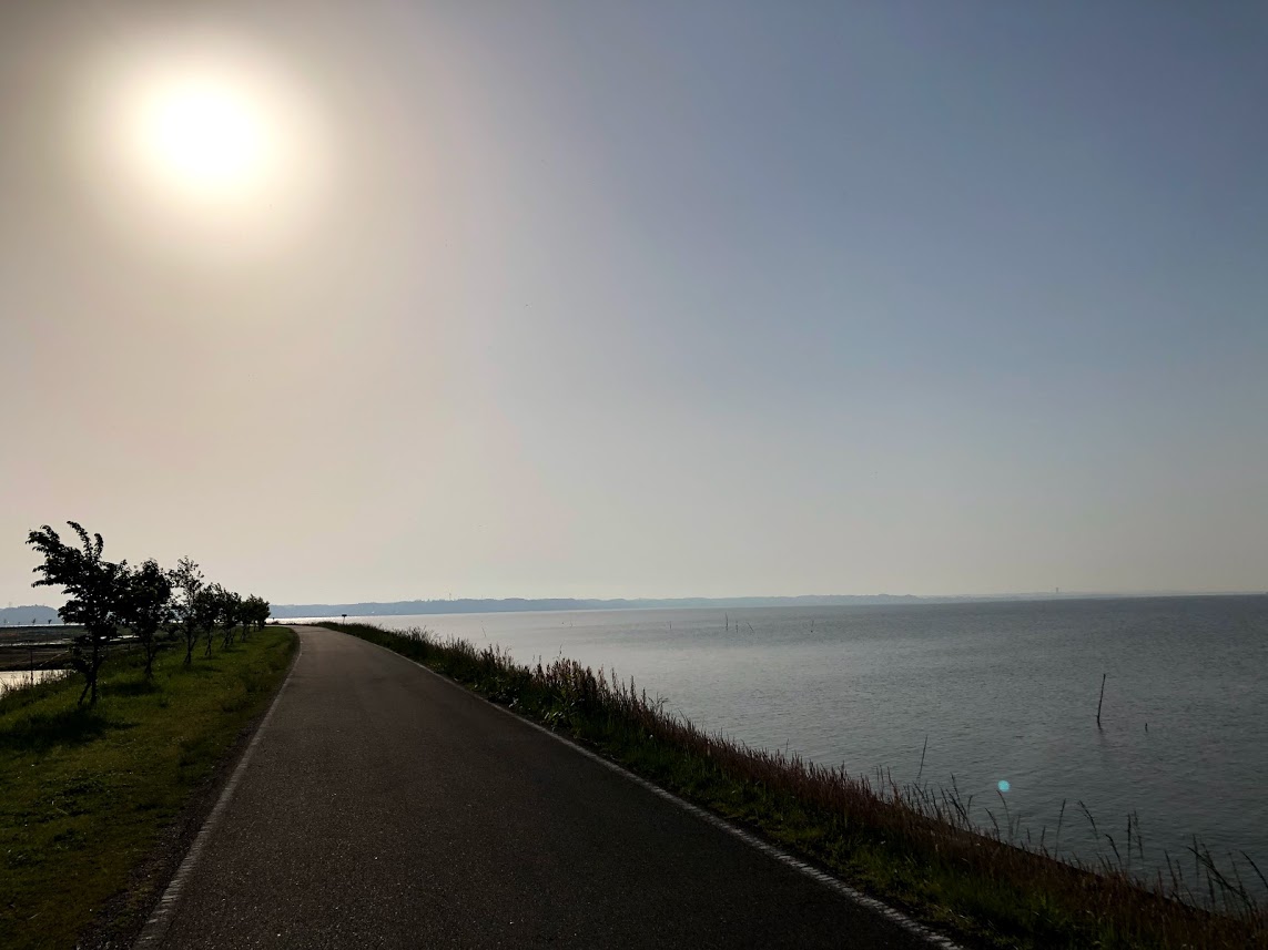 ほぼ平坦で時速30キロ弱の巡航速度で脚も使わず楽々サイクリングでした。