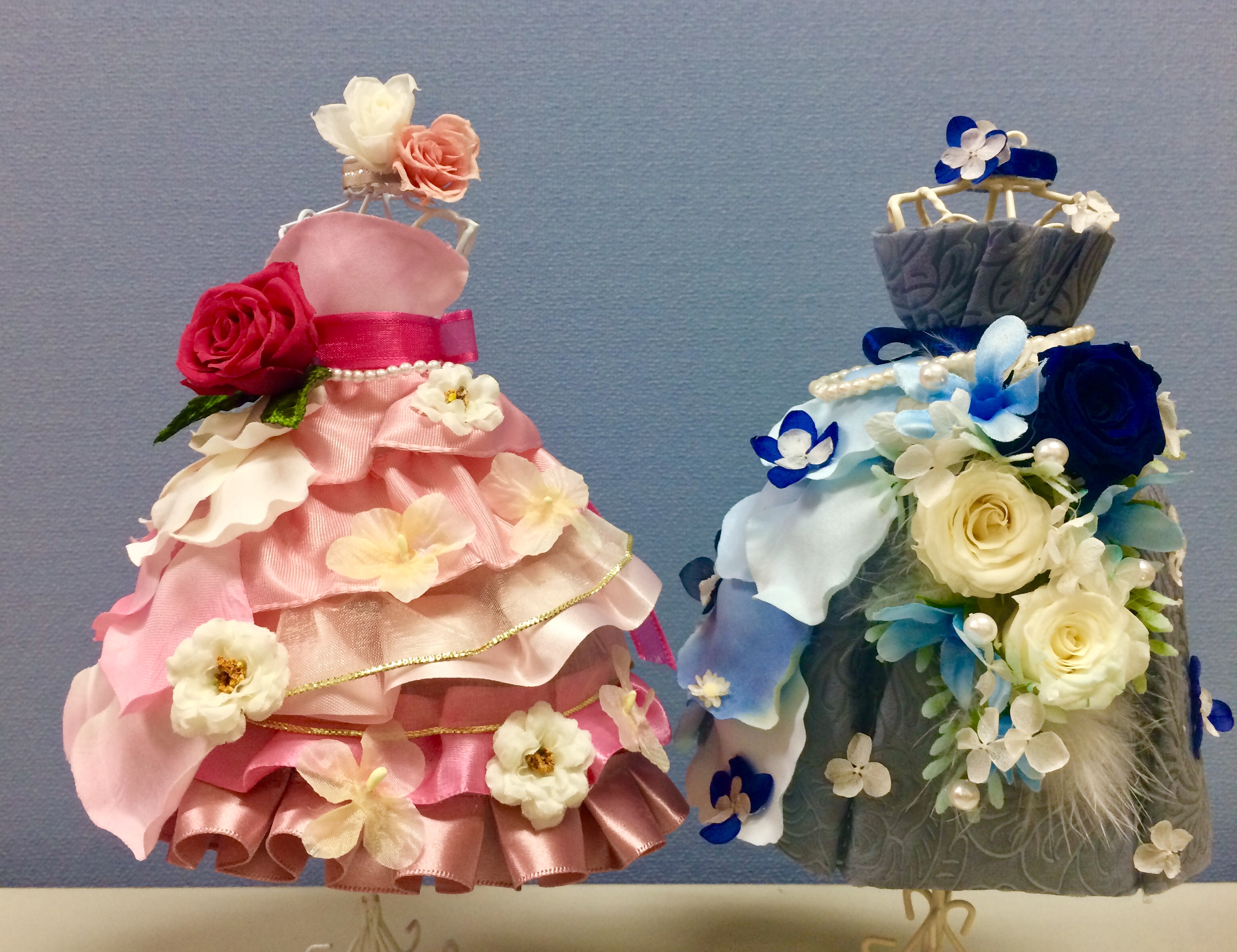 プリザーブドフラワーでドレスを作りました。