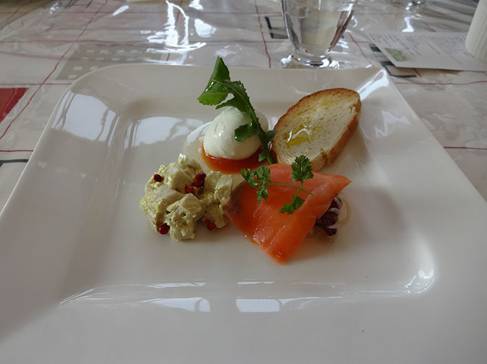 サーモンを桜チップと塩でスモークしたのが、面白かったです。