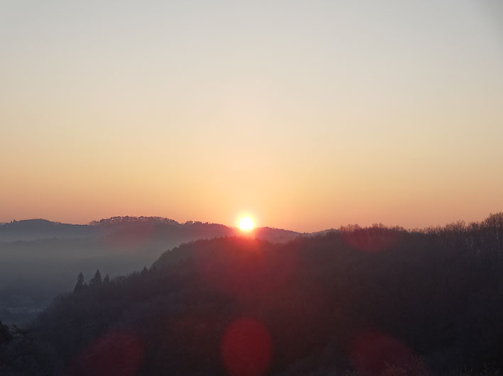 元旦の初日の出を観るために、お仲間と4時半に氷点下6度の宇都宮市内を出発して真っ暗な中を市貝町の芝桜公園へ