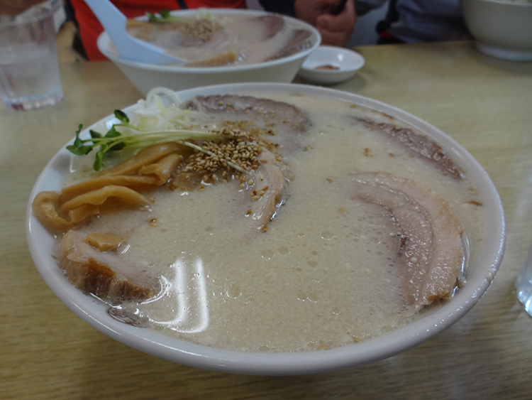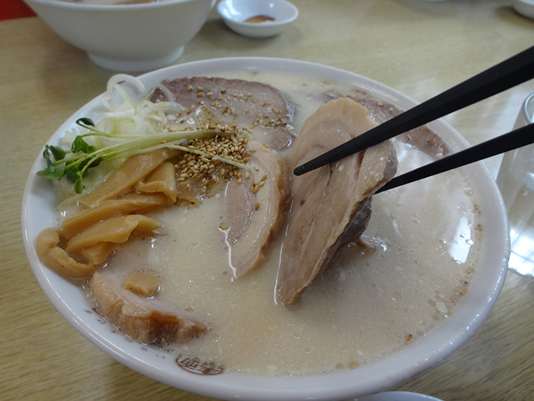 ゴマチャーシュウ麺を注文しましたが、スープに隠れたチャーシュウが強敵でした。