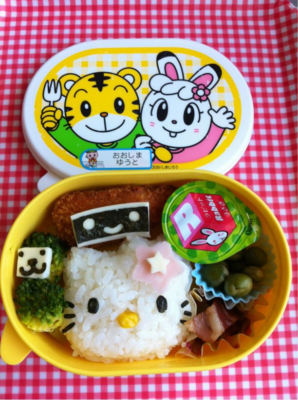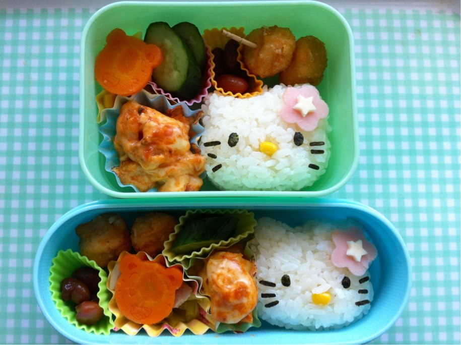キティーちゃん弁当。単純な顔なのに、難しい。