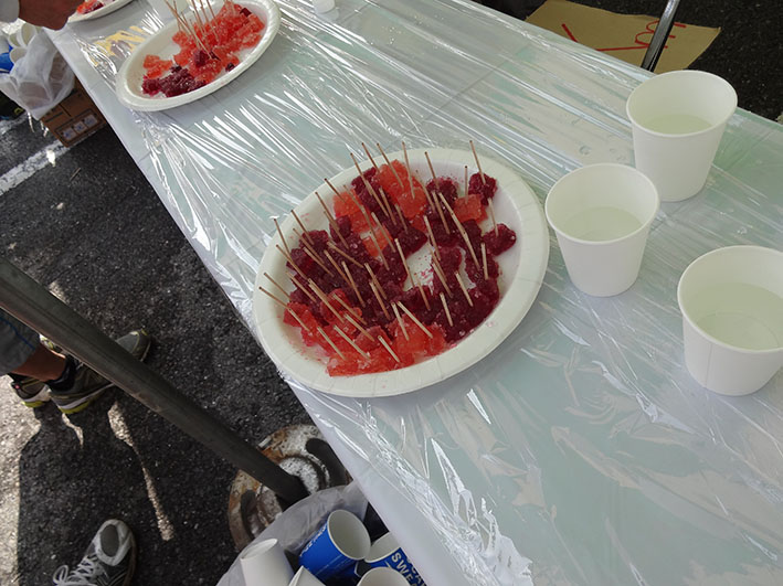 昨日、宇都宮環状道路をメインコースにしたフルマラソン大会「ミヤラン」が開催されました。初夏を思わせる炎天下から雷雨へと乱高下する天候の中、約800人が42キロのランを楽しみました。私は、ラン仲間と救護ボランティアとして完走して来ました。この大会の特徴は、5キロ毎のエイドで宇都宮の名物スイーツが提供されることです。