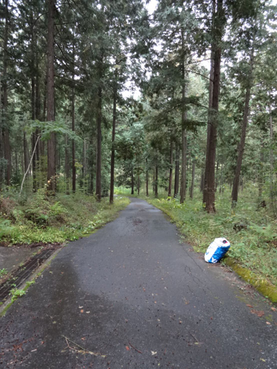 写真は、誘導係として立っていたポイントです。選手は、写真の坂を上って立て看板を右折して通過していきます。歩いて登るのもきつい坂です。