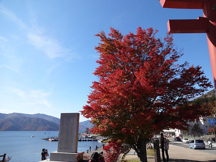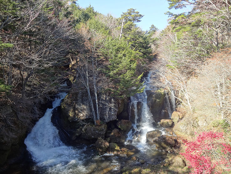 中禅寺湖周辺は木々の紅葉が鮮やかでしたが、残念ながら竜頭ノ滝の紅葉はすでに終わっていました。