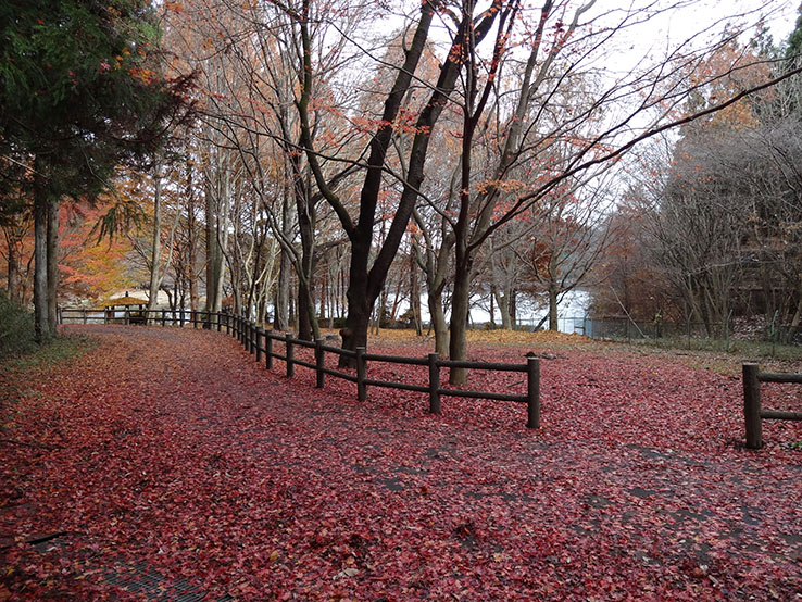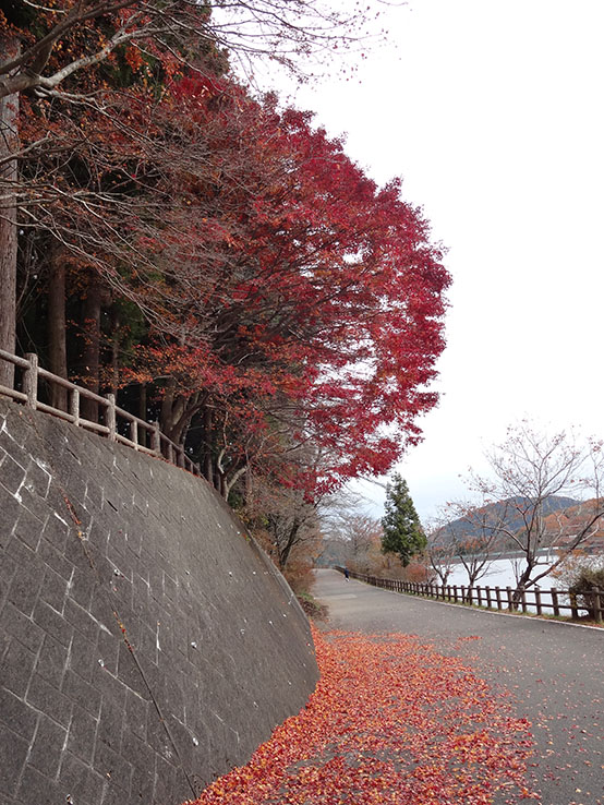 おまけ、大会前にお仲間とラン練した赤池ダム周回コースの風景です。紅葉の絨毯が素晴らしかったです。