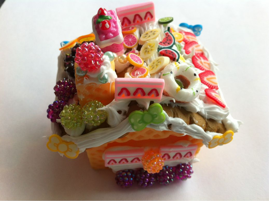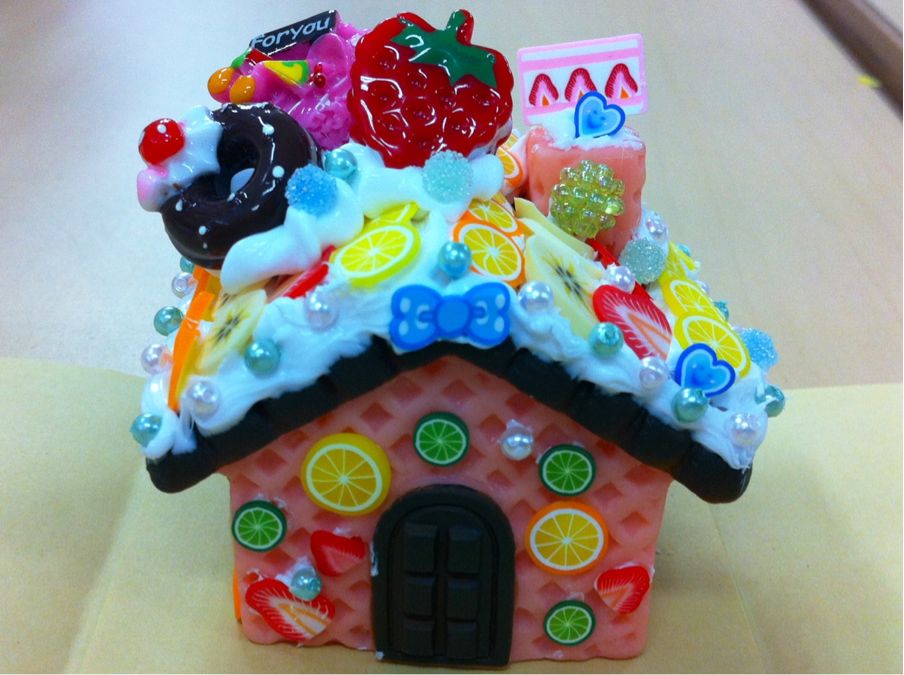 私と次男で作った、スイーツデコの貯金箱です。