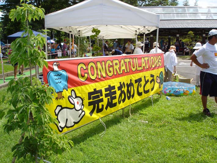 完走後、皆さんとワイワイガヤガヤと名物「キューリ付きカレー」を食べながらお互いの健闘を称え合いました。