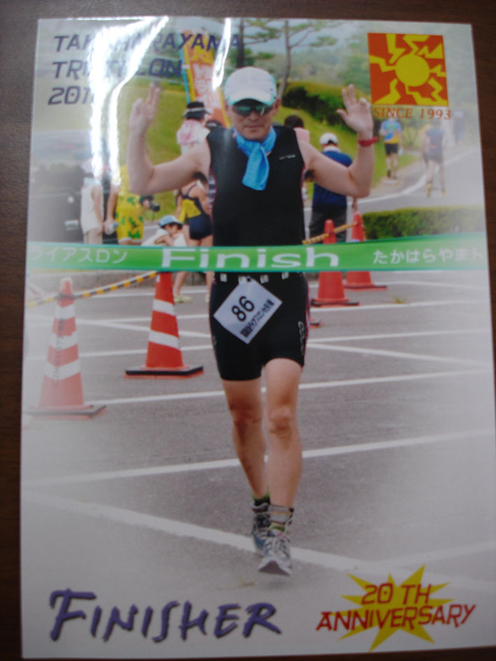結果は、スイムはいつも通り1.5キロを29分弱で切り抜けましたが、バイク40キロはチェーン脱でタイムロスして1時間36分もかかり、ラン10キロは暑さにへろへろになりながら55分ほどでクリアーし、今年も無事完走しました。