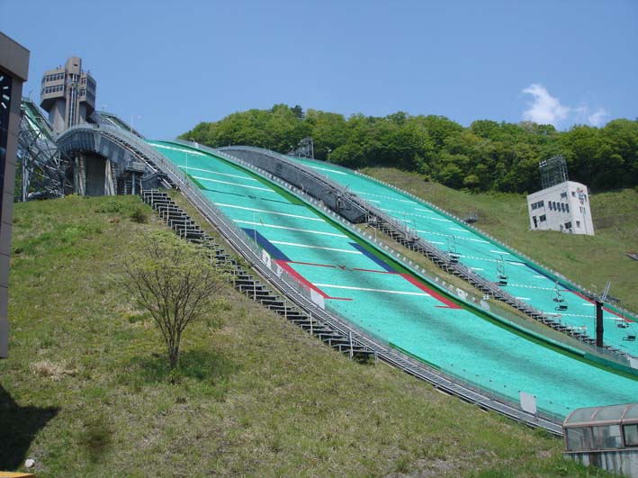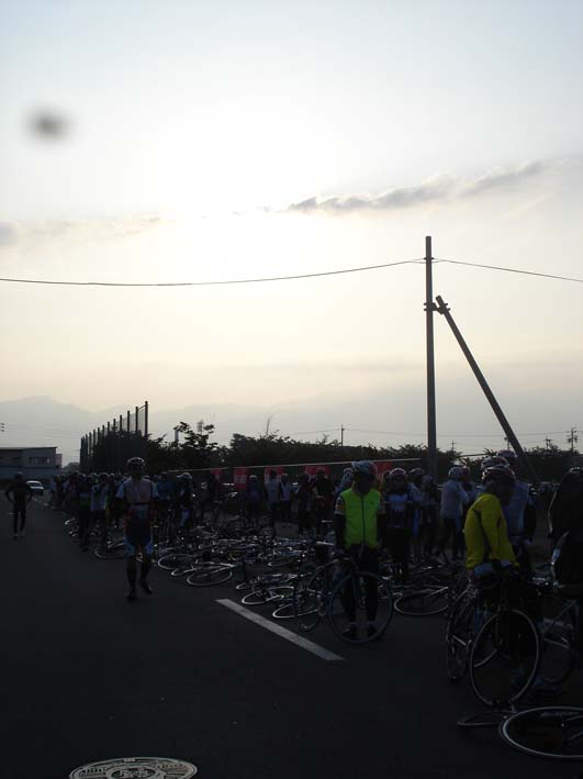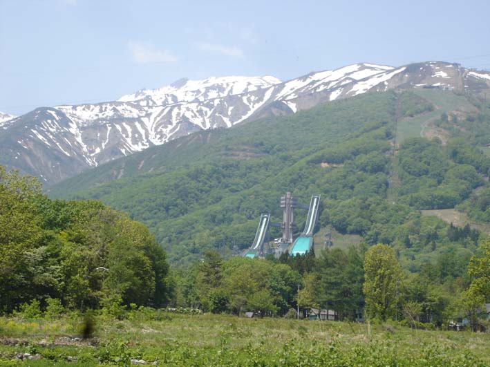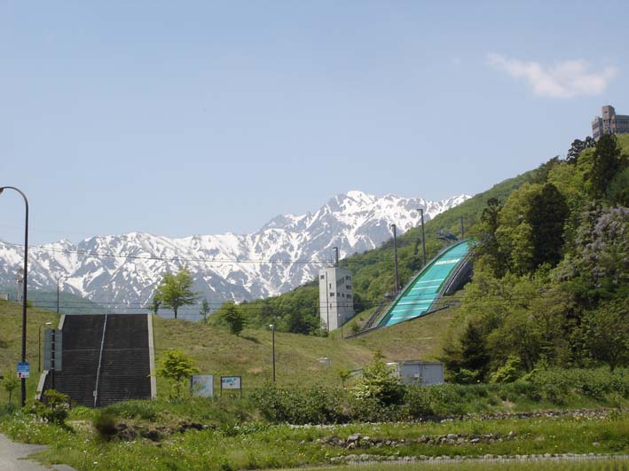 お折り返し地点の白馬ジャンプ台エイドでおにぎりと豚汁を頂き、