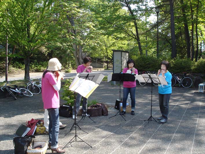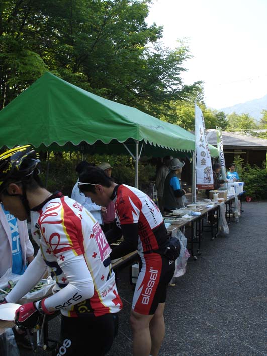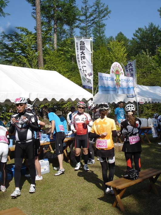 地元の愛好家の奏でるオカリナの曲に迎えられて大町温泉郷エイドに到着です。