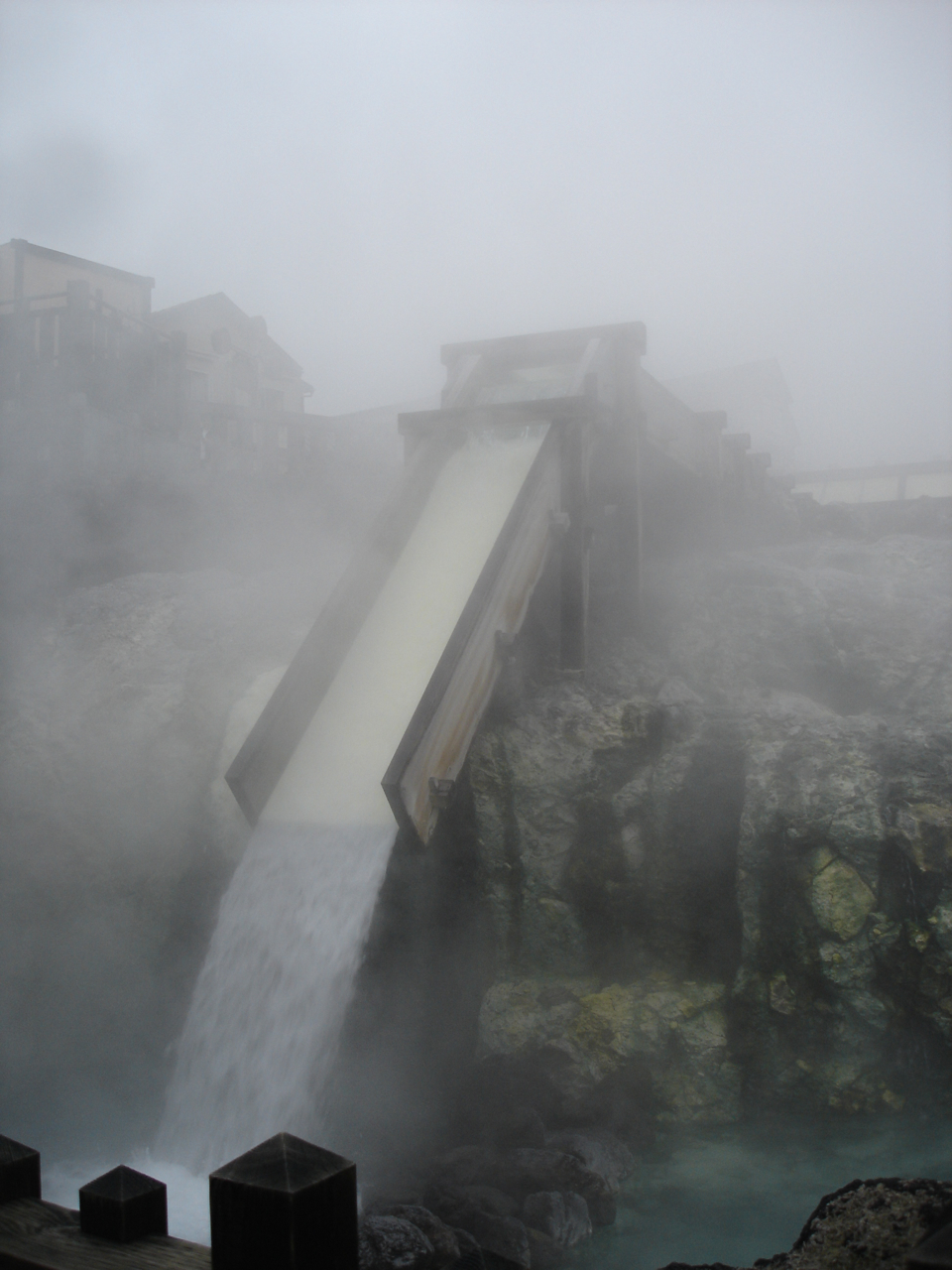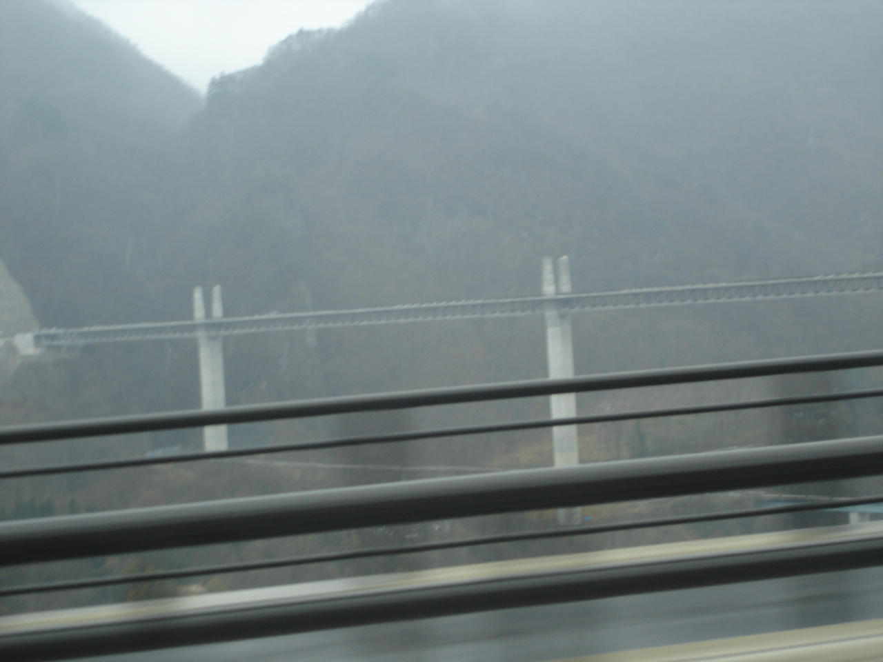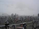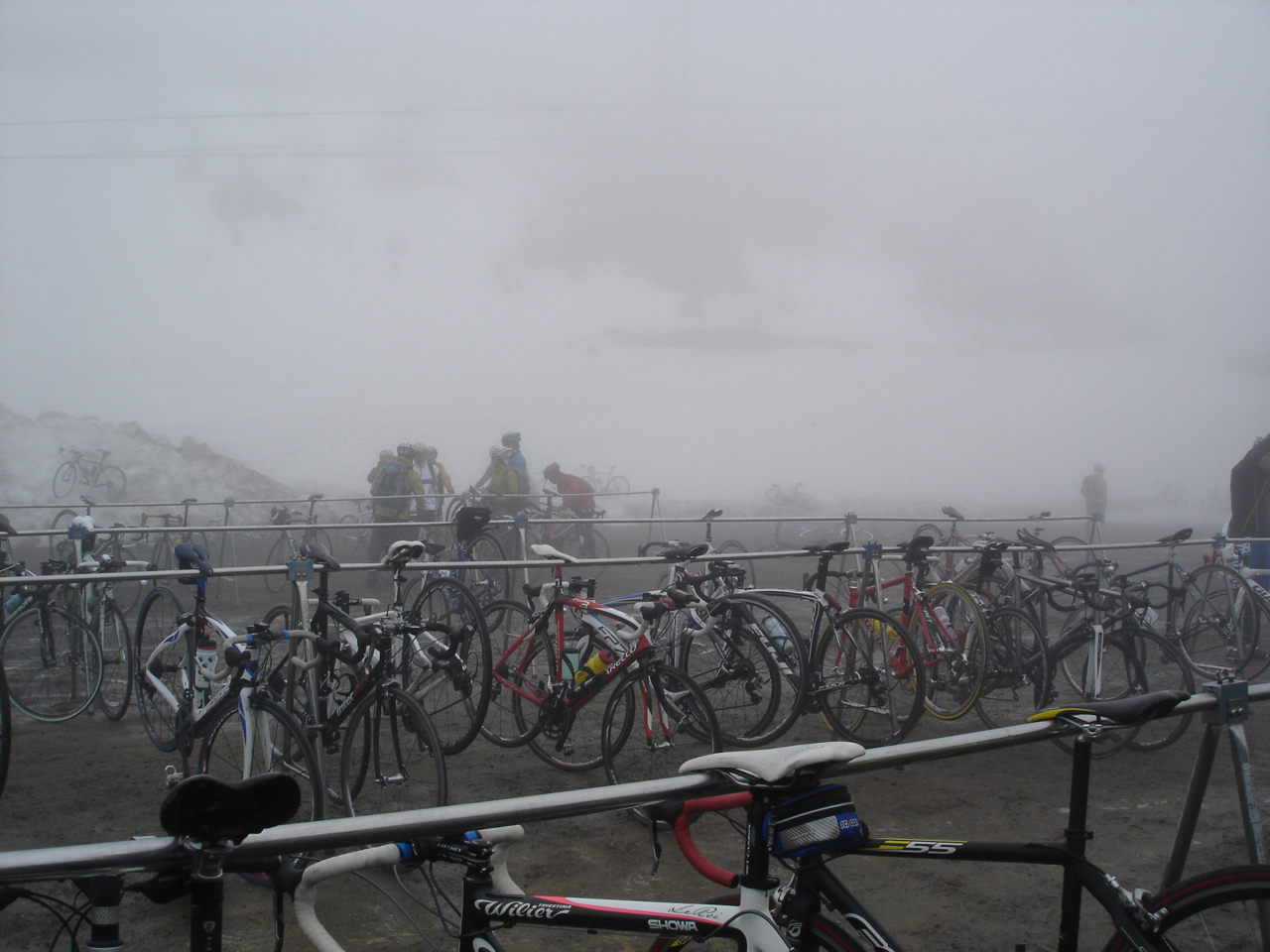 大会当日はご覧の通り、参加者のロードバイクが霧にかすんでいます。