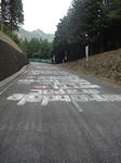 山岳賞がかかった古賀志林道の頂上の道路には選手を応援するチョウク書きが